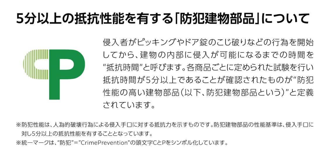 鍵の掛け忘れといった不注意を減らすなど、ちょっとしたことで侵入犯罪を防止することは可能ですが、それだけでは不十分な場合もあります。ドア本体をこじ開ける手口の侵入犯罪も発生しています。このような荒々しい手口に対応するため、CP部品(防犯性の高い建物部品)を導入し、侵入口となる窓や玄関口を物理的に強化するほか、防犯カメラやセンサーライトを設置するなど、防犯対策を施すことも効果的です(^^)