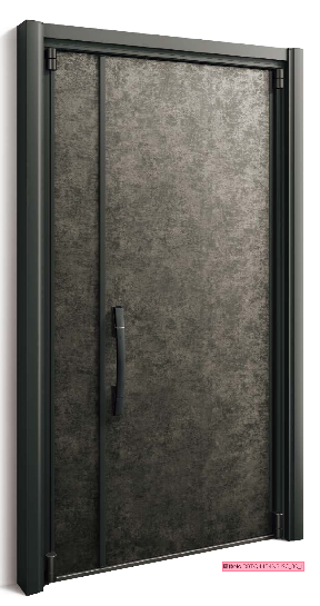 アルミ色や木目調が主流の玄関ドアの中で、このデザインは石目調の表面材になっています。