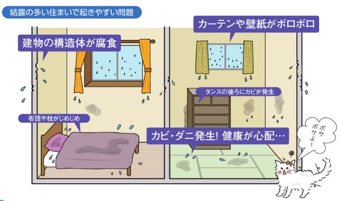 また、湿気で家が傷みやすくなるので、住まいの寿命を縮めてしまうこともあります。