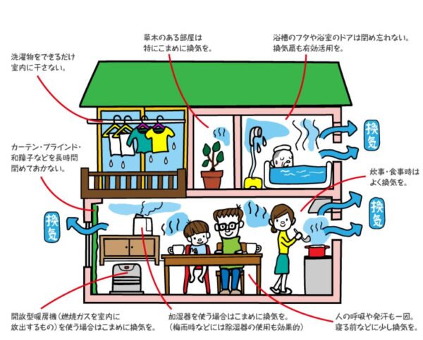 結露を抑えるためには、こまめな換気で家の中の水蒸気を外に逃がすことが大切です!