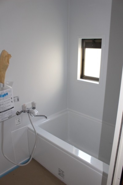 そして、新しいユニットバスを組立て設置したところがこちらです。浴室が一気に明るくなり、新しい住人の方が気持ちよくお風呂に入れそうです。