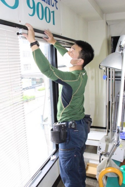 こちらの会社では、17か所の交換でしたので、当社の工事スタッフが交換させていただきました。窓廻りのブラインドやロールカーテンの交換もMADOショップ吹田中央店にご相談ください。