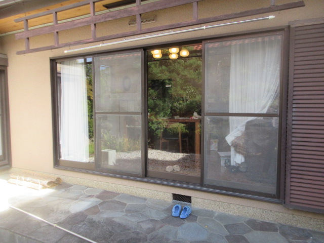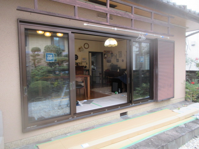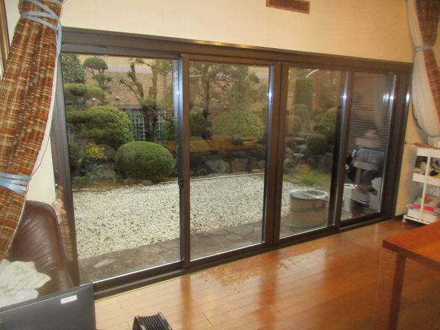 吹田市内にて4枚建ての掃き出し窓を樹脂&アルミ複合の高断熱サッシへとリフォーム工事させていただきました🎵