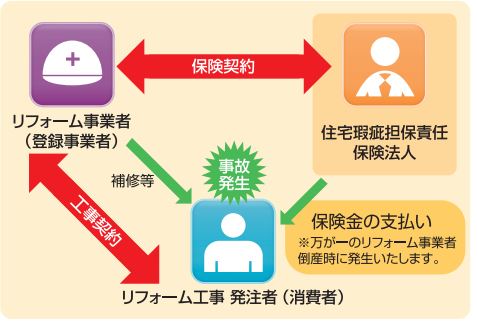 「リフォーム業者が倒産してしまったら、アフターメンテナンスはどうなるの?」という不安が解消されます!万が一施工に欠陥が見つかった時に、施工業者が倒産してしまっていても、保証期間内であれば、規定内の補修費用を保険法人に請求が出来ます。