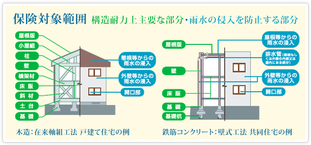 保険金支払いの対象となる補修範囲は、欠陥があった部分および当該欠陥から波及して損害を受けた住宅部分が対象となります。(最大1000万円(保険内容によって異なります))