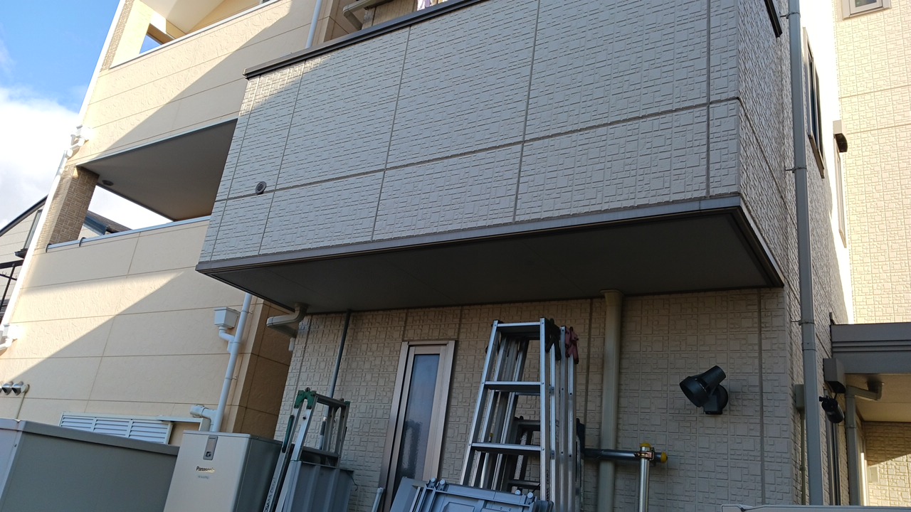 施工後② 裏側下道路から写真です。この様な斜め加工はアール型では出来ませんので、フラット型のみになります。