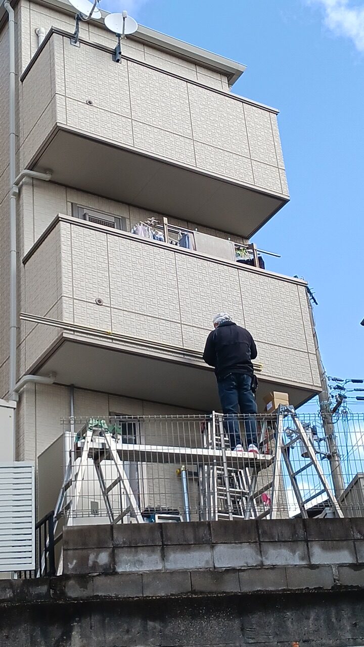 施行中② 裏側下道路からの撮影です。斜めになっている事が良くわかると思います。
