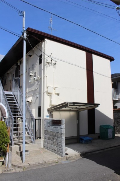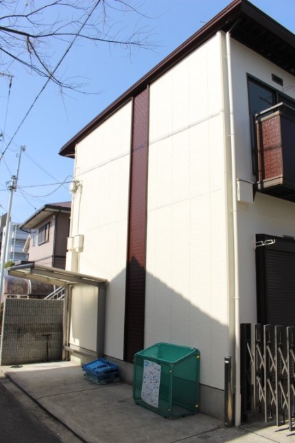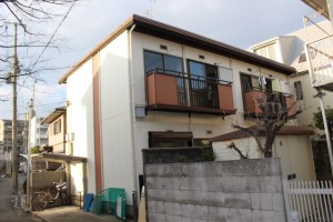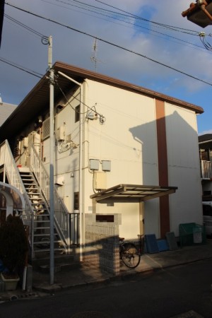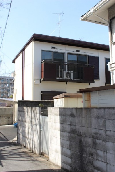 吹田市の賃貸用ハイツの外壁塗装工事と屋根塗装工事を施工いたしました。築36年の鉄骨造り2階建ての賃貸用のハイツです。