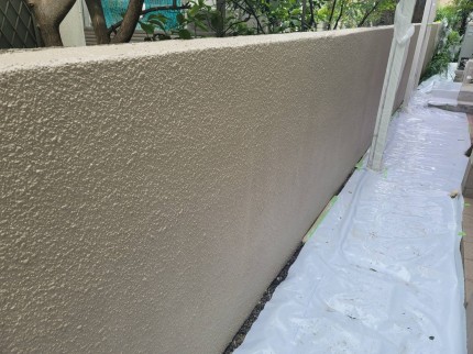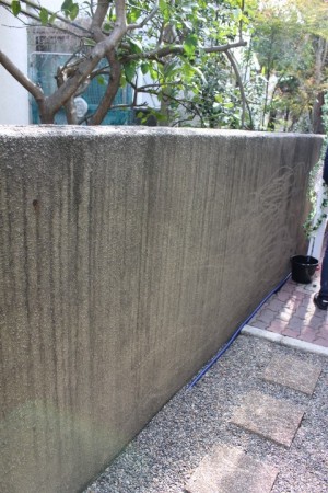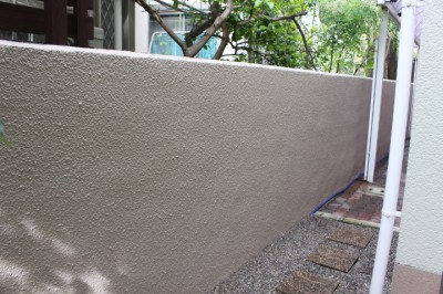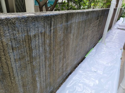 25年程メンテナンスされていなかったとのことでした。雨だれや汚れなどで見た目が÷なっていました。外塀の下地はブロック塀でした。