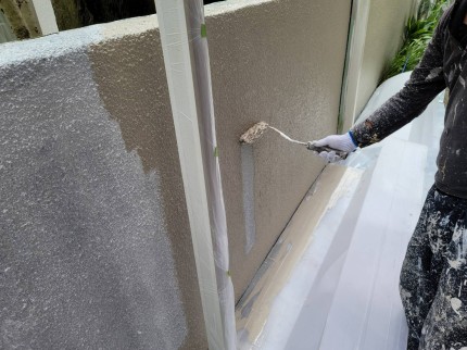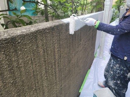 クラック修理後は、外塀に塗装が付きやすくするため、下地処理としてプライマーを塗ります。