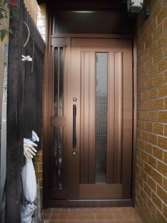 吹田市 ご自宅ランマ付玄関ドア、古くなったので、リフォーム取替工事例です。