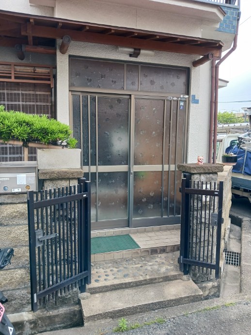 既存ご自宅アルミランマ付引き違い戸です。ご相談は①硝子面が多く防犯面で心配②障子の高さが1.8Mと低いので高くしたい。との事でした。この①②のご要望を叶えられます商品をご提案しました所、気に入って頂きご契約となりました。今回、この玄関引戸取替施工例を掲載させて頂きます。