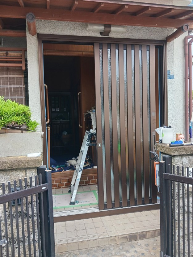 吹田市 既存ランマ付和風玄関引戸をランマ通し洋風玄関引戸に取替施工例です。
