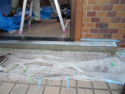 まず、施工1日目に室内が汚れないようにしっかり養生シートを貼り付けました。