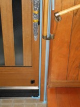 お客様から「外開きの玄関ドアを開ける時、すぐ後ろに階段があるので危ないから困っている。何とか玄関ドアを引き戸に取替えてもらえないか。」とご相談を頂きました。