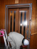 新しい引き戸枠を取付けるのに、既存の格子が妨げていた為、既存の格子を撤去することになりました。