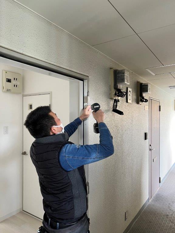 吹田市 マンション玄関ドア本体の交換施工例です。(簡易カバー工法)