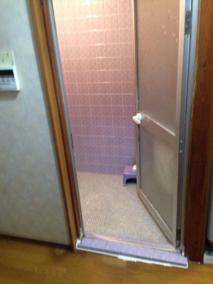 お客様から「浴室の扉を折れ戸に取替えて欲しい」とご要望を頂きました。