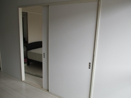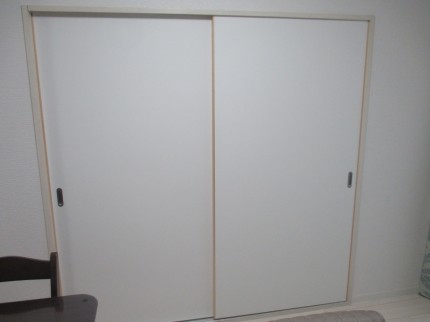 今回、3ヶ所の室内建具を新調させて頂きました。既存の物は、建てつけが悪く、閉めても隙間が開いてしまっていました。また、溝の塗料が戸車こすれて削れて、剥げてきていました。