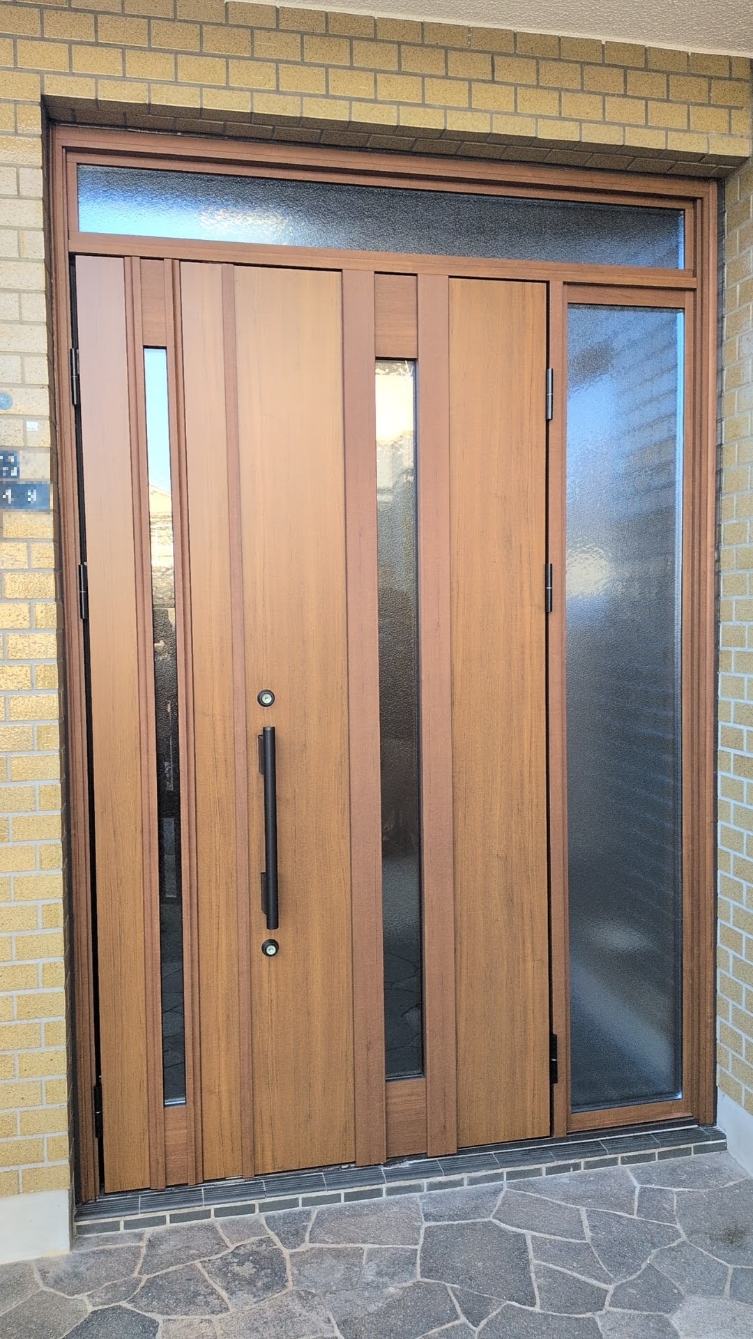吹田市 古くなった既存ランマ付袖FIX片開きドアをYKKAP製ドアリモ玄関ドアにて取替致しました。