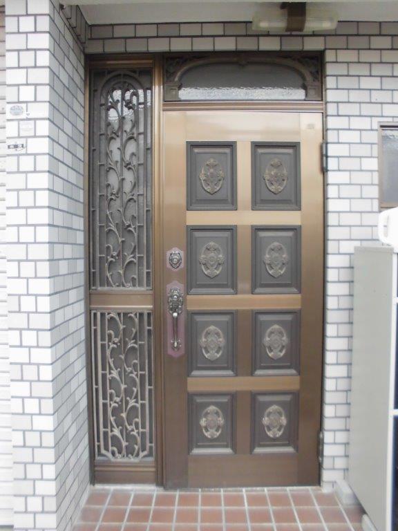 吹田市 賃貸マンション玄関ドア(親子タイプ)を既存枠そのままでドア本体のみの交換をさせて頂きました。