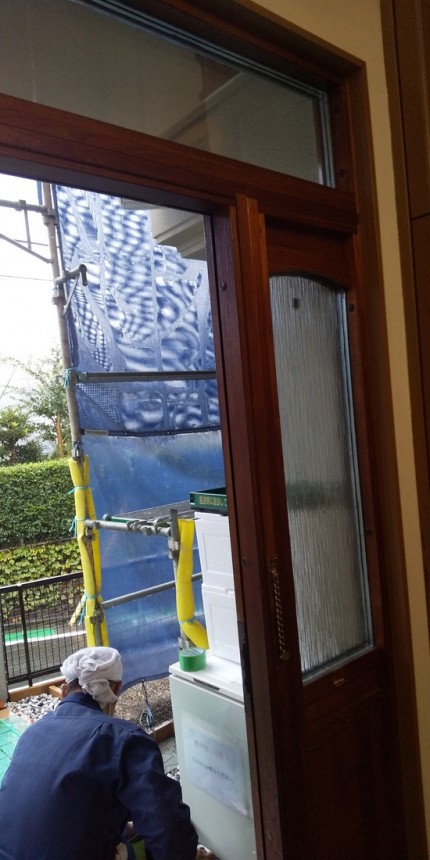 ご依頼主様は外壁の塗り替え工事中でありまして、家の周りには足場で囲まれておりました。