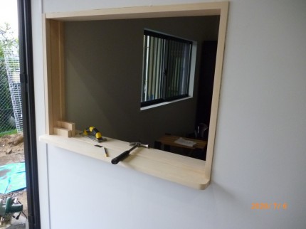 今回はガラスの入っていた場所に新しい引き違いの枠を取り付けていきます。
