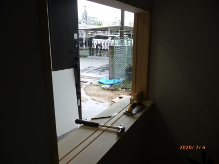 施工中④左右、上部に下地材を取付終わりましたら、サッシ枠を取付て行きます。
