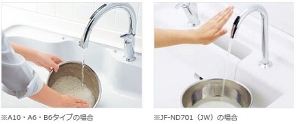 お米を研ぐ時や野菜を洗う時など、濡れた手で水栓に触れずにすむので、水栓まわりが汚れることはありません