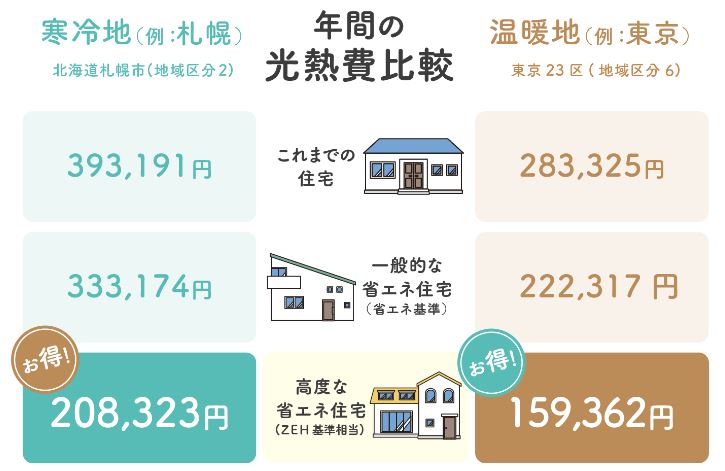 A.「建築物省エネ法」に基づく、住宅の省エネ性能の違いによるものです。省エネ基準レベルは2025年4月よりすべての新築新築住宅で適合義務化がされる予定の水準です。ZEHレベルは、2030年度以降新築される住宅において確保することを目指す、より高い省エネ性能の水準であり、現時点では、誘導基準として定められています。