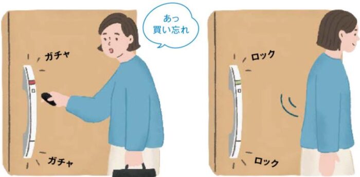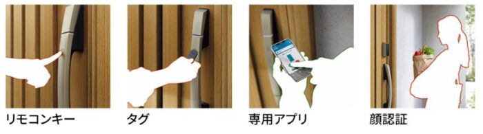 近年では、カギを使わず顔認証やスマートフォンアプリ、リモコンなどからかんたんに施解錠できる機能のついた玄関ドアもあります♪引き戸にリフォームができない場合は、電子錠を使った玄関ドアへの取替もおすすめです😊