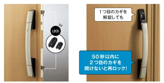 リモコンタイプであれば、リモコンをポケットや鞄に入れておけば、ドアハンドルのボタンを押すだけで鍵の施解錠ができます!さらに、専用のアプリを使ってスマホで鍵の開け閉めを行うこともできます!