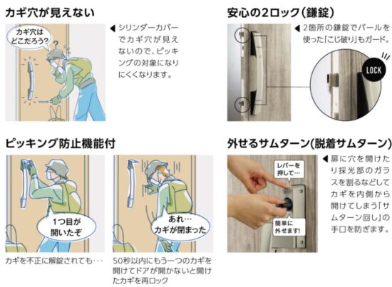 また、物理的な鍵はディンプルキーが標準になっていますので、防犯面も安心です!