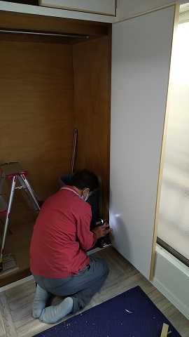 吹田市 収納部の両開き戸と引違い戸を製作、取り付けに行って来ました。