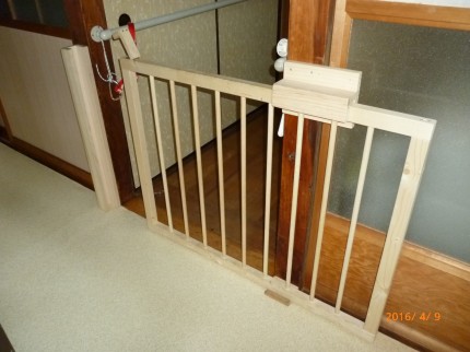 写真の格子の引き戸は、犬を飼うことになり縁側と廊下を仕切る為に製作しました。下部には戸車が取り付けてあり上下の木製ガイドの内側を転がるようにしました。