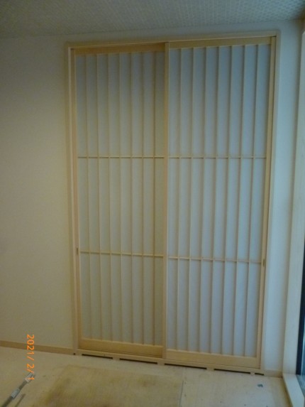 芦屋市 背の高い引き違いの障子を製作、取り付けしてきました。