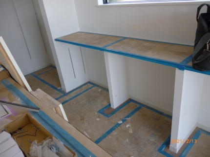 今回はキッチンの背面にカウンター下部収納を造作工事で施工されてます。