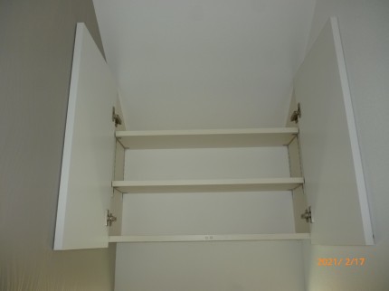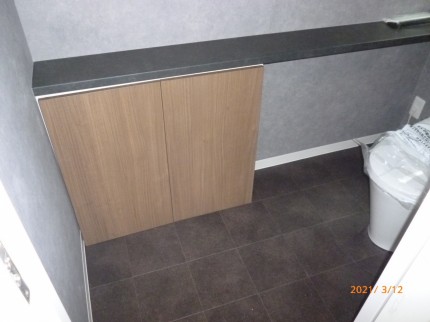 その他 トイレの吊戸棚の収納用扉も製作、取り付けしてきました。