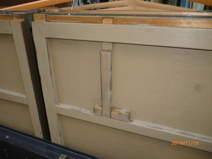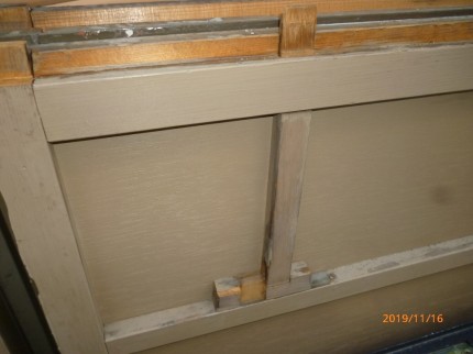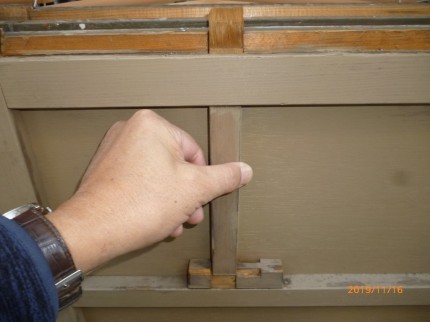 吹田市 雨戸の交換工事で引き上げてきた、古い雨戸の施錠方法が面白く、写真に納めました。