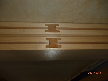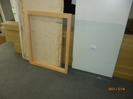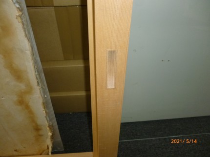 中心のH型の木製の部品は建具の上部の框材の厚みが薄くなっている為、反りで開くのを防ぐ部材です。