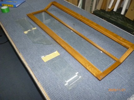 ガラス押えを外し、再製作するガラスの寸法を調べていきます。割れたガラスと残っているガラスを調べていくとようやく新しく製作するガラスの寸法が出ました。