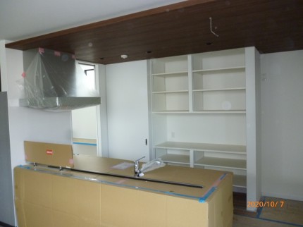 西宮市 キッチンの背面収納3枚引違い戸を製作、取り付けしてきました。|