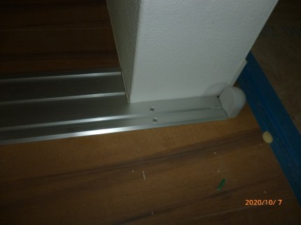 最初にフロアレールを床にビス止めし、脱線防止の為戸当たりゴムを固定します。