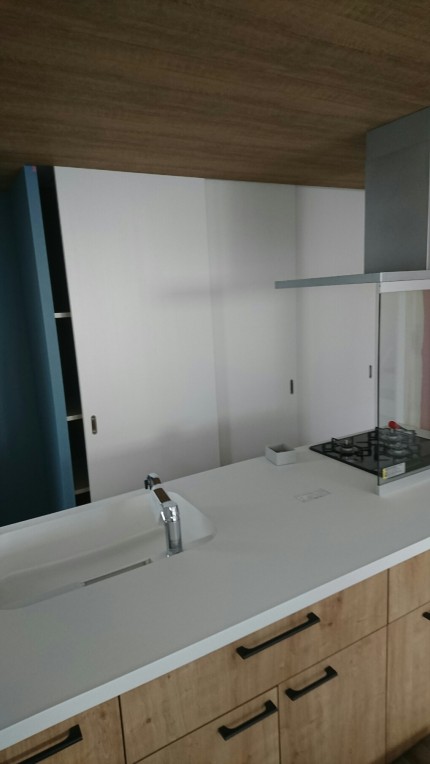西宮市。キッチン背面3枚引違戸を製作しました。|