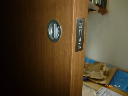 施錠をしたいとのことですので、引き戸用の鎌錠を取り付けしました。