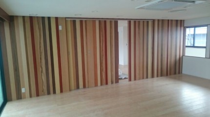 このカラフルな壁に3枚の引違い戸が含まれているのが、解りますか?(笑)