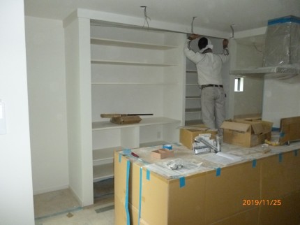 今回のキッチン背面収納は、建具の模様が面白い引戸の取り付けに行ってきました。