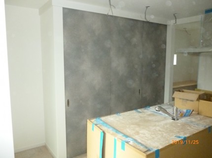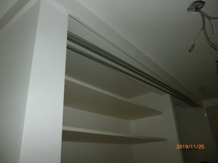 まずは、クロスの張り終えたことを確認して、金物類のとりつけです。