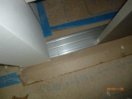 下部のフロアレールも切り合わせしながら丁寧にとりつけします。特に上部のガイドとの位置合わせをキッチリします。