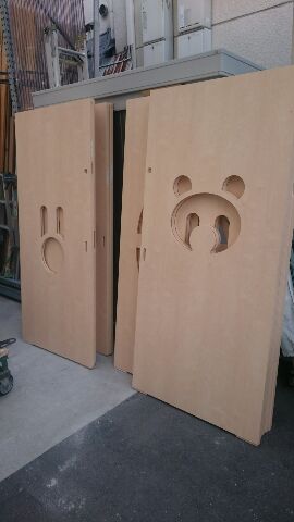 保育園の建具。クマの窓の建具も仕上がってきました。